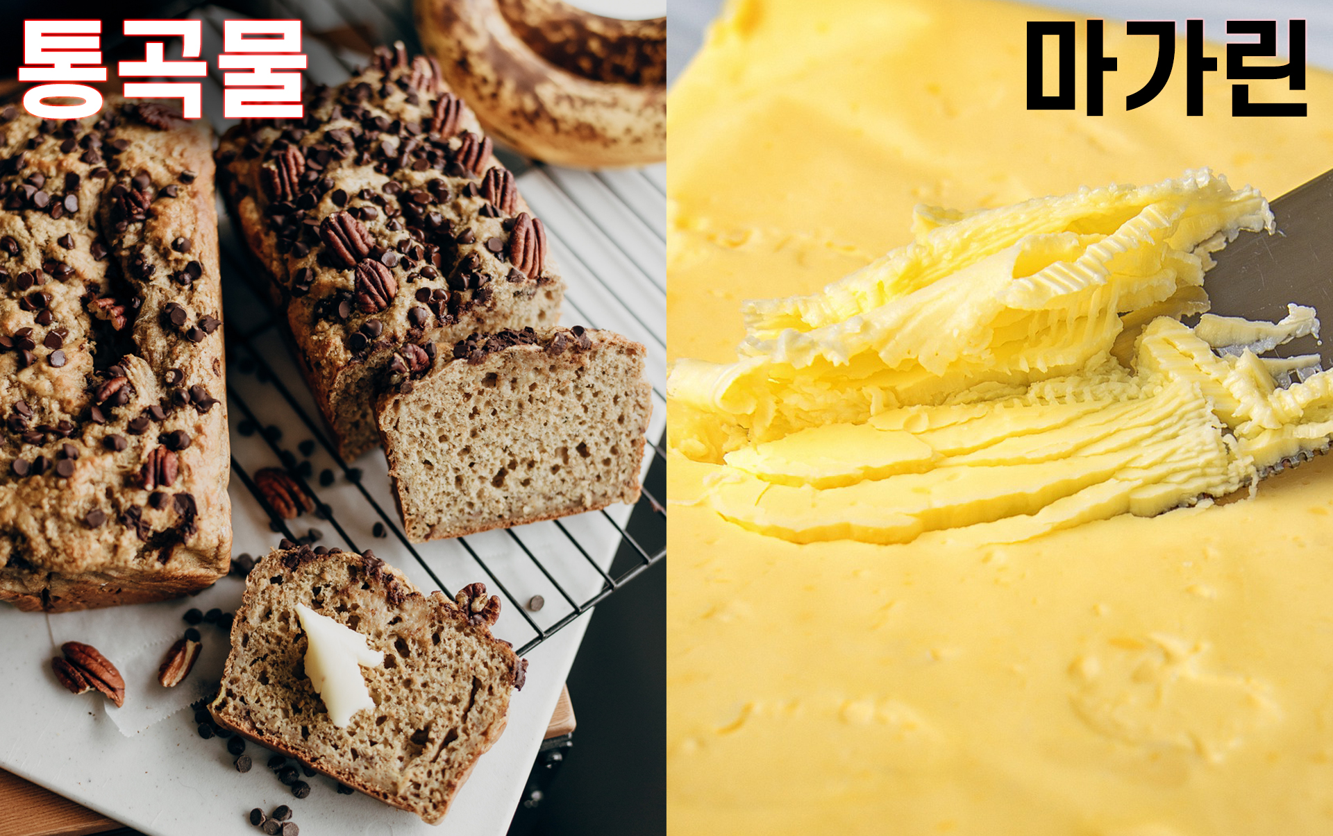 버터처럼 풍부한 동물성 포화지방이 들어있다고 착각하는 분들이 많아요. 하지만 실체는 식물성 오일과 다른 복합성 화학물이 섞인 제품입니다. 통곡물은 많은 섬유지를 포함하면서 GI 지수는 낮아서 건강한 식품으로 알려져 있어요. 꼭 그런 것은 아닙니다. GI 지수에 관하여 통곡 밀빵은 백미 빵과 비슷하게 인슐린 수치를 올릴 것입니다.