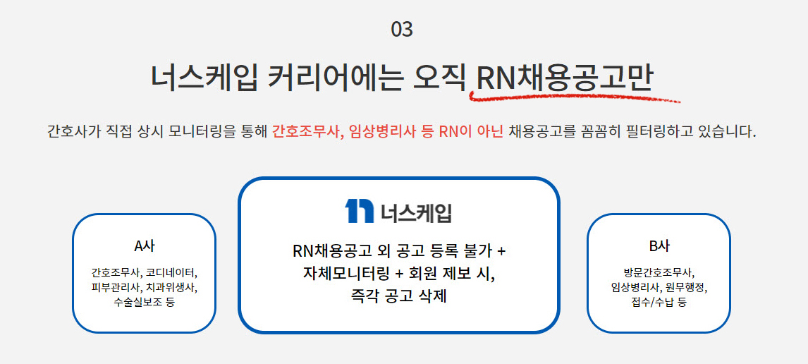 간호사와 간호조무사가 같이 검색되는 사이트는 아무래도 보기 불편하죠. 간호사가 직접 모니터링을 해서 RN이 아닌 채용공고는 다 내리고 있답니다. 정말 간호사만을 위한 공간이네요. 물론 모바일도 활용 가능합니다.