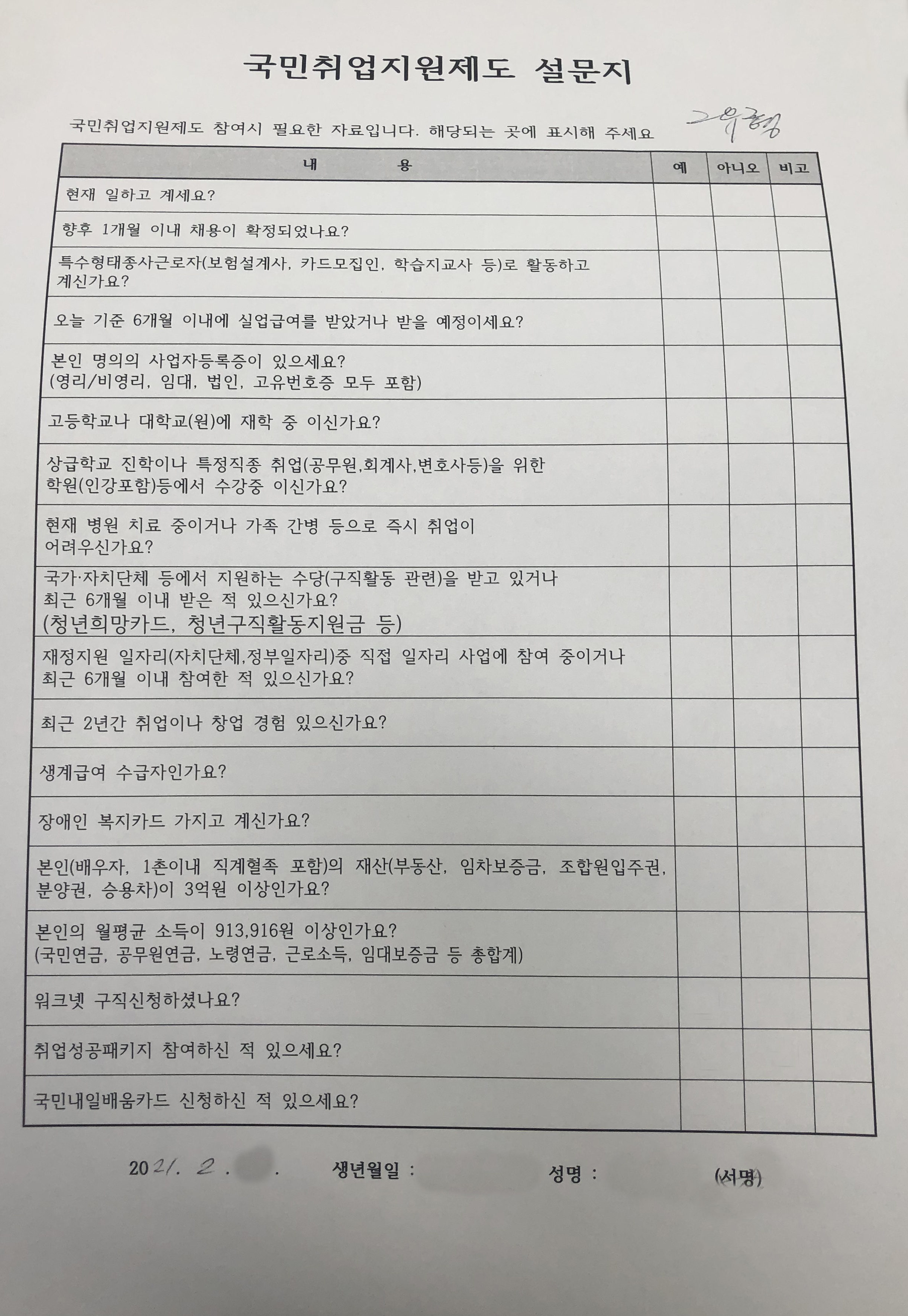 온라인 신청도 좋지만 오프라인으로 신청하면 설문조사로 인해 유형을 알고, 상담받을 수 있으니 온라인보다 좋은 점인 것 같습니다. 국가에서 주는 혜택 받으며 힘내시고, 앞으로 좋은 날들만 가득하셨으면 좋겠습니다. ^^