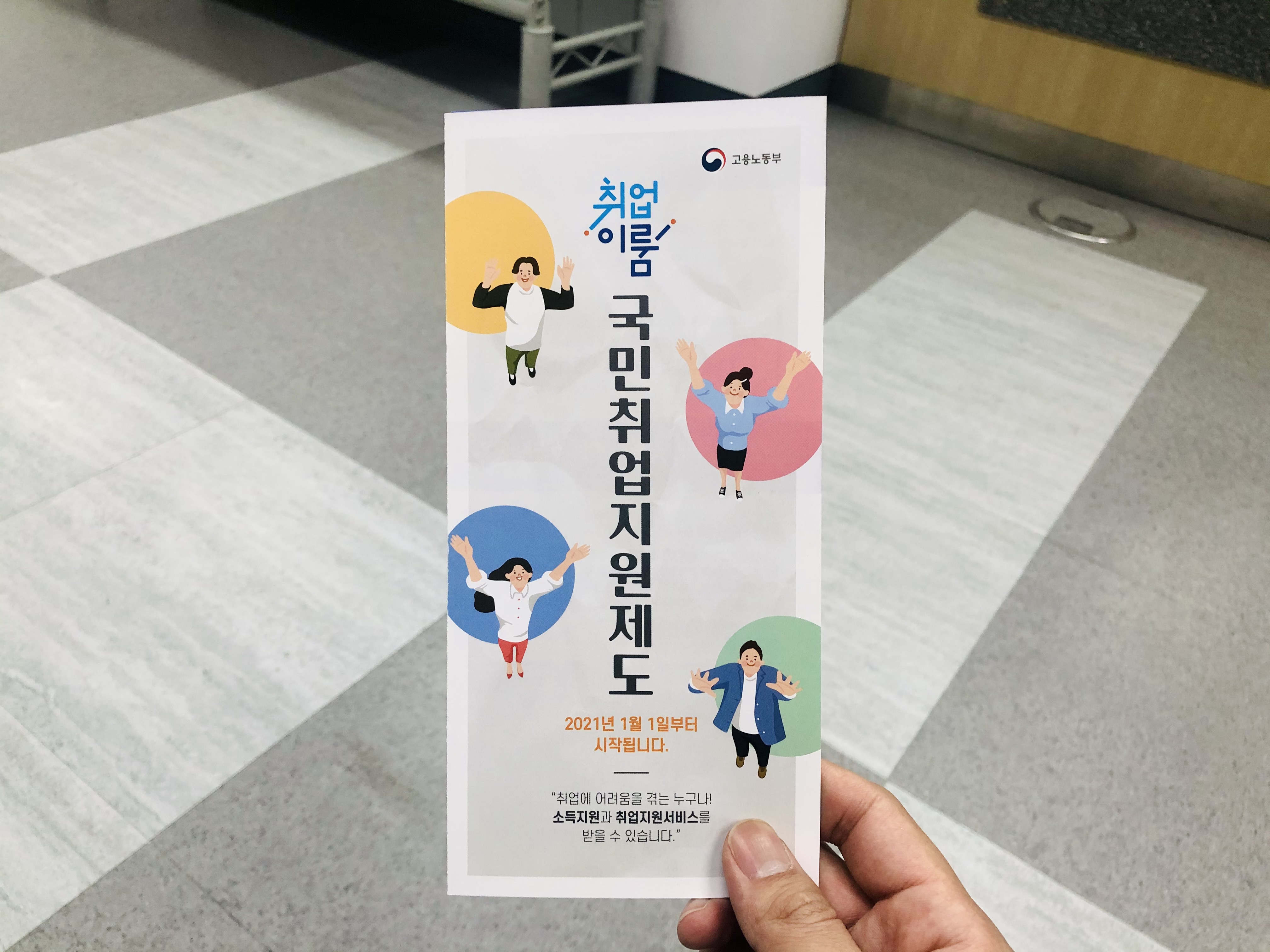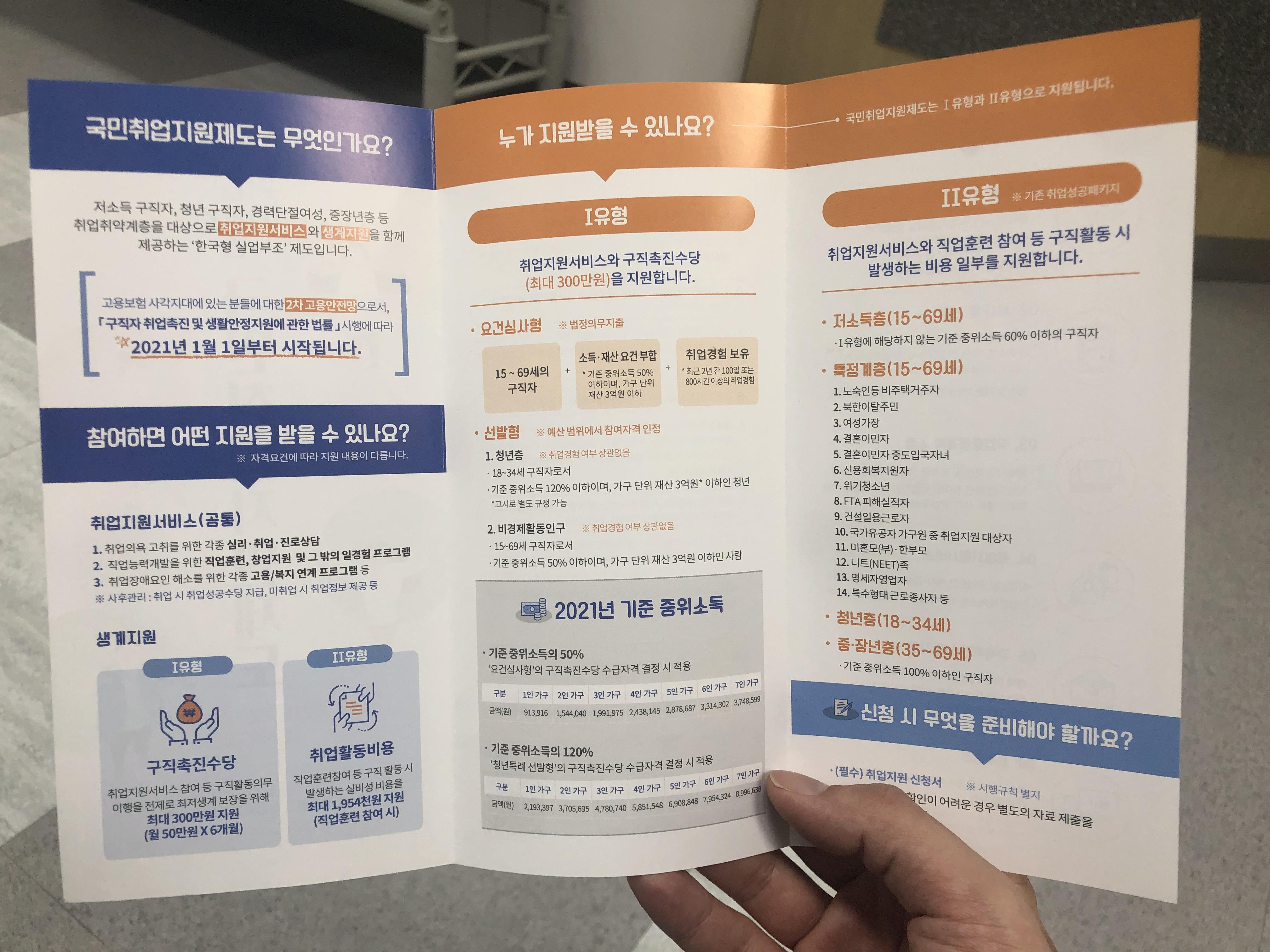 국민취업지원제도를 직접 신청하러 갔었습니다. 카탈로그 하나를 주는데 많은 정보가 들어있네요.