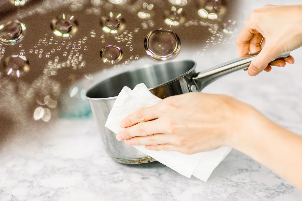 스테인리스 제품을 사용하기 전에 주의해야 할 점이 하나 있습니다. 내부 표면을 매끄럽게 하려고 연마제라는 물질을 사용합니다. 따라서 스테인리스 제품을 새로 구입하셨다면 표면에 남아있는 연마제를 깨끗이 닦아서 사용하시는 것이 좋습니다. 종이타월에 식용유를 적당이 묻힌 다음 냄비의 안쪽 표면을 닦으세요. 그리고 식초를 첨가한 물을 넣고 10분 정도 끓인 후 세척하면 연마제가 제거됩니다.