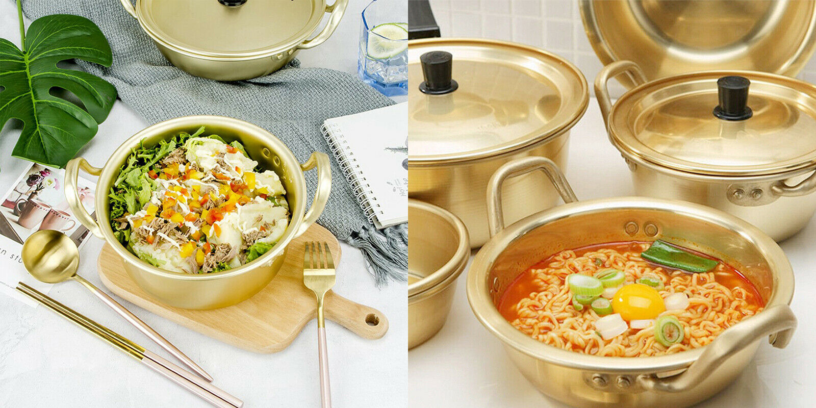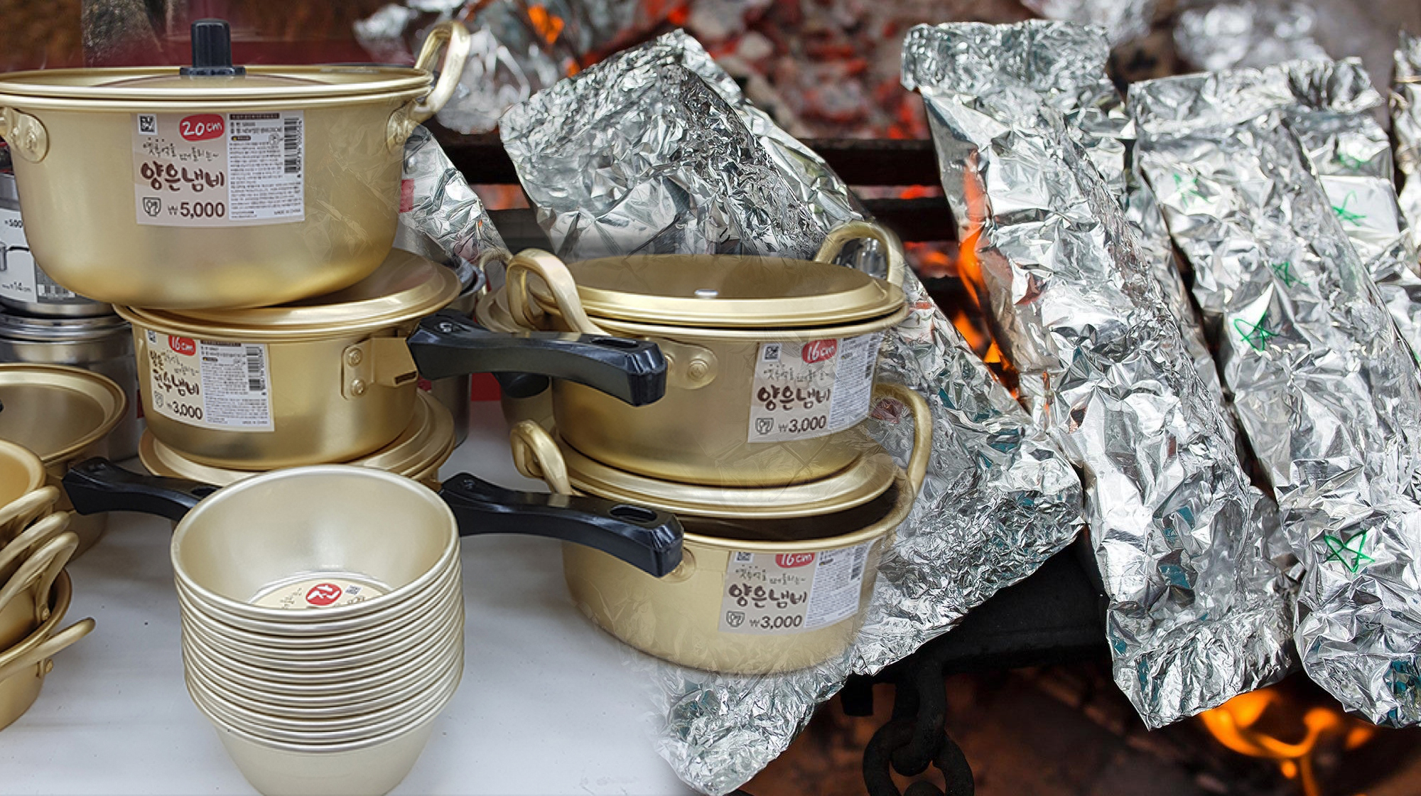 양은냄비의 코팅이 벗겨지고 없어져도 계속 사용하는 식당이 많아요. 포장용기 역시 알루미늄 호일을 자주 사용합니다. 복고풍과 레트로 느낌을 더 살리기 위해 일부러 찌그러트리고 망가지게 때려서 사용하기도 합니다. 아이러니하게도 이런 냄비에 담긴 라면이 더 맛있게 느껴지긴 해요. 그래도 안돼요. 정신 차려야 합니다.