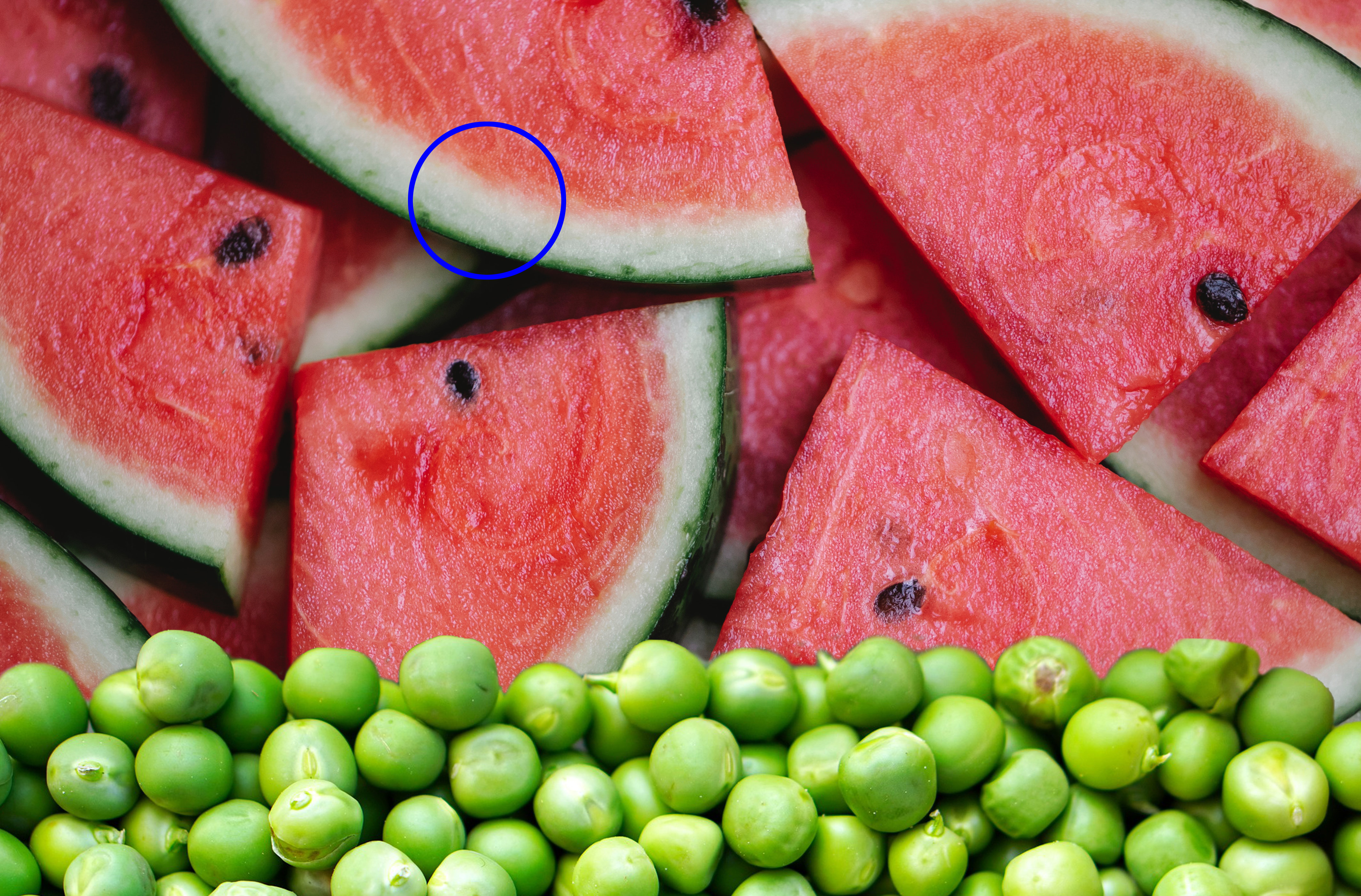 껍질이 상당히 두꺼운 수박은 아무리 농약을 뿌려도 우리가 먹는 부분까지 침투하지 못한답니다. 물론 수박 껍질로 요리를 한다면 껍질 부분을 깨끗이 씻으세요. 완두콩 역시 껍질을 까서 먹기 때문에 농약에 대한 걱정이 없습니다. 사진만 봐도 수박과 완두콩에 유기농이라는 이름을 붙이기는 쉽지 않겠네요.